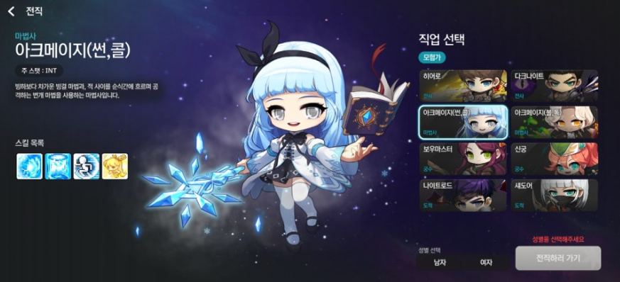 SS아크메이지(썬콜)광역기+빙결, 자동 발동 스킬 최강방어력 낮음
