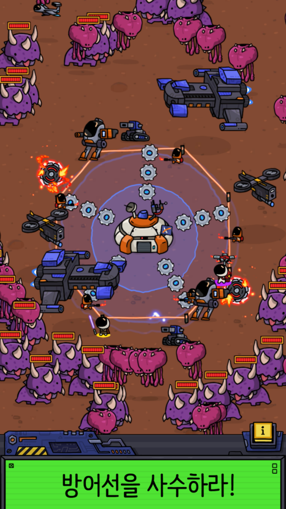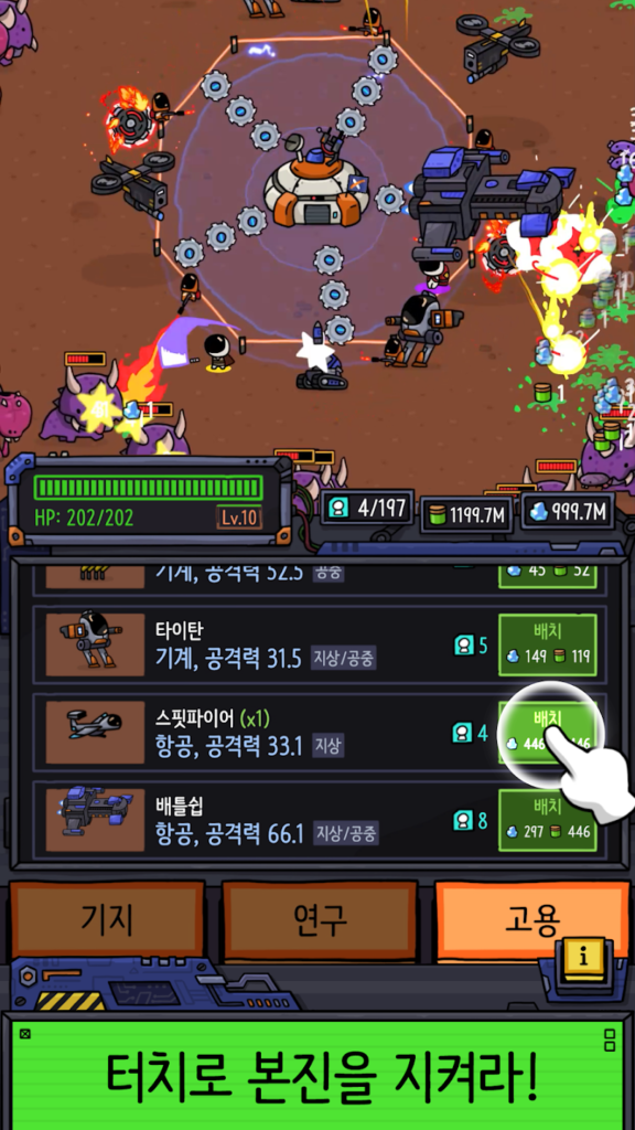 • 배치한 병력(유닛)이 적을 막아내며 기지를 보호