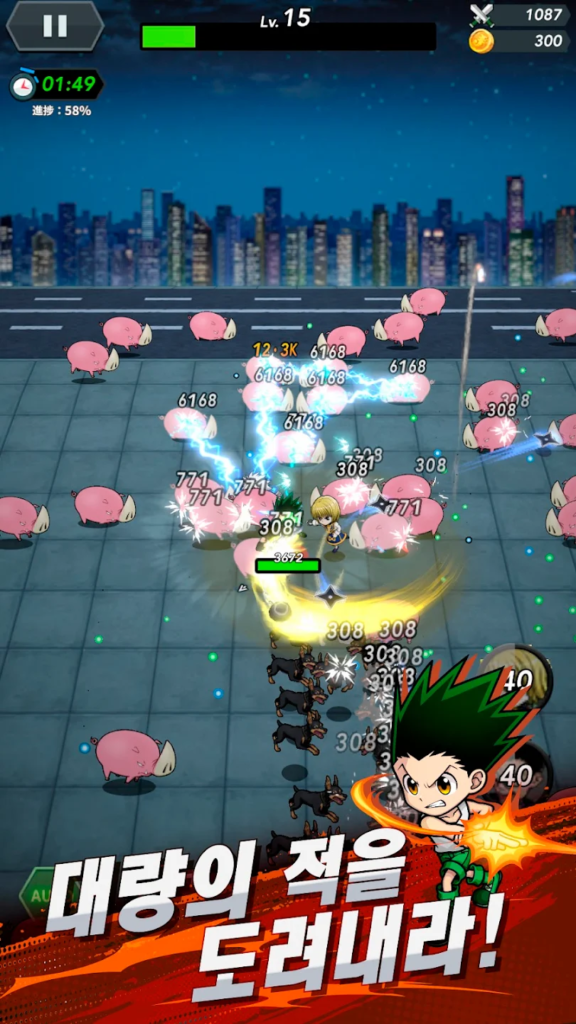 곤, 키르아, 히소카, 크라피카, 레오리오, 네테로 등 원작의 주요 캐릭터들이 등장하며, 강화계·변화계·방출계 등 6가지 넨 계통을 스킬 시스템에 그대로 녹여낸 것이 특징입니다. 헌터×헌터 팬이라면 원작 재현도에 감탄할 수 있고, 서바이버 장르 팬이라면 빌드 조합의 중독성을 느낄 수 있습니다.